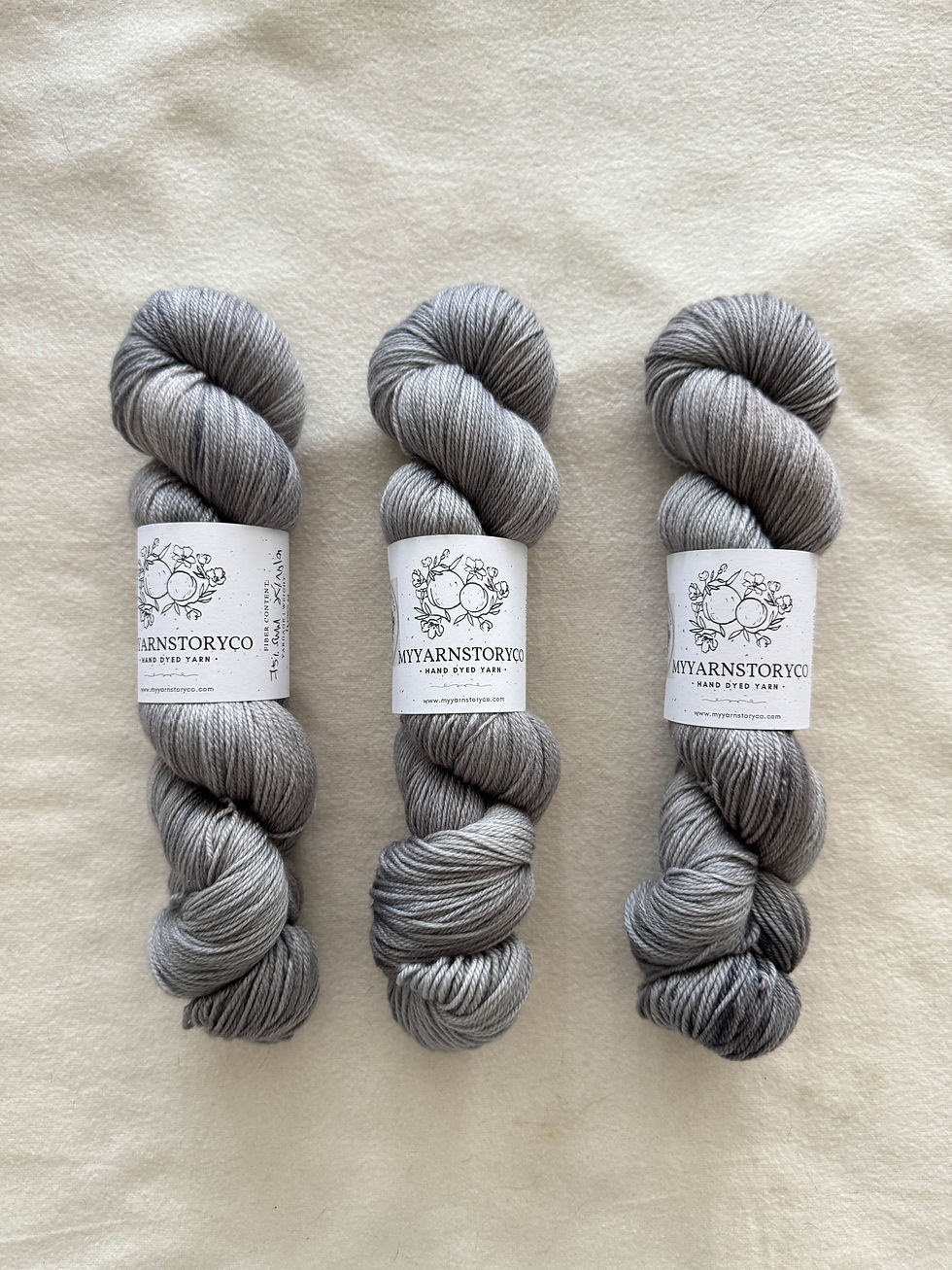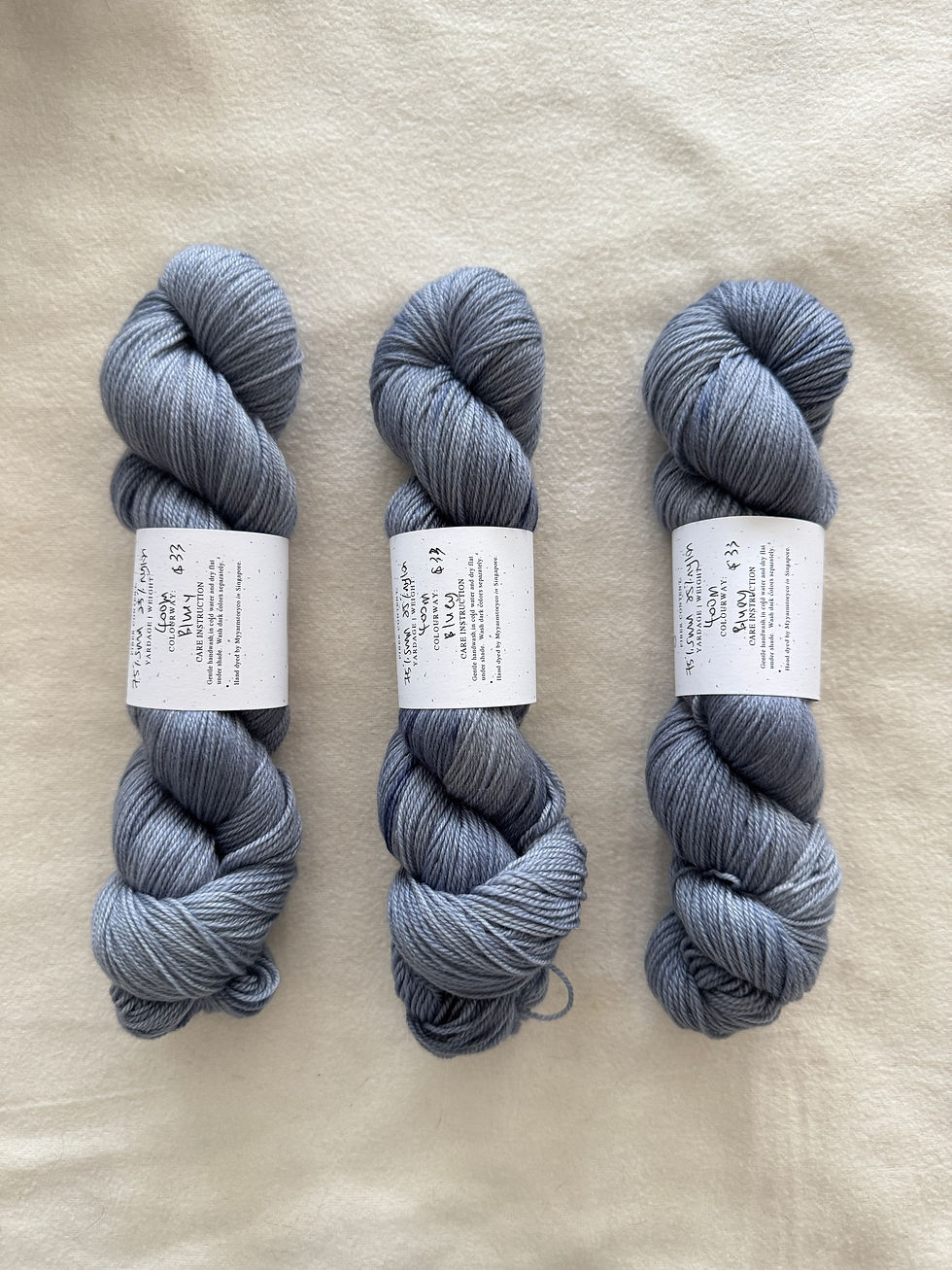 Superwash Merino (SWM)/ Nylon - A base yarn which I adore much. It showcase the colors beautifully and it is so easy to handle. The merino from this yarn base is luxuriously soft and bouncy for next to skin comfort. It knits up on 2.0mm to 4.0mm needles.